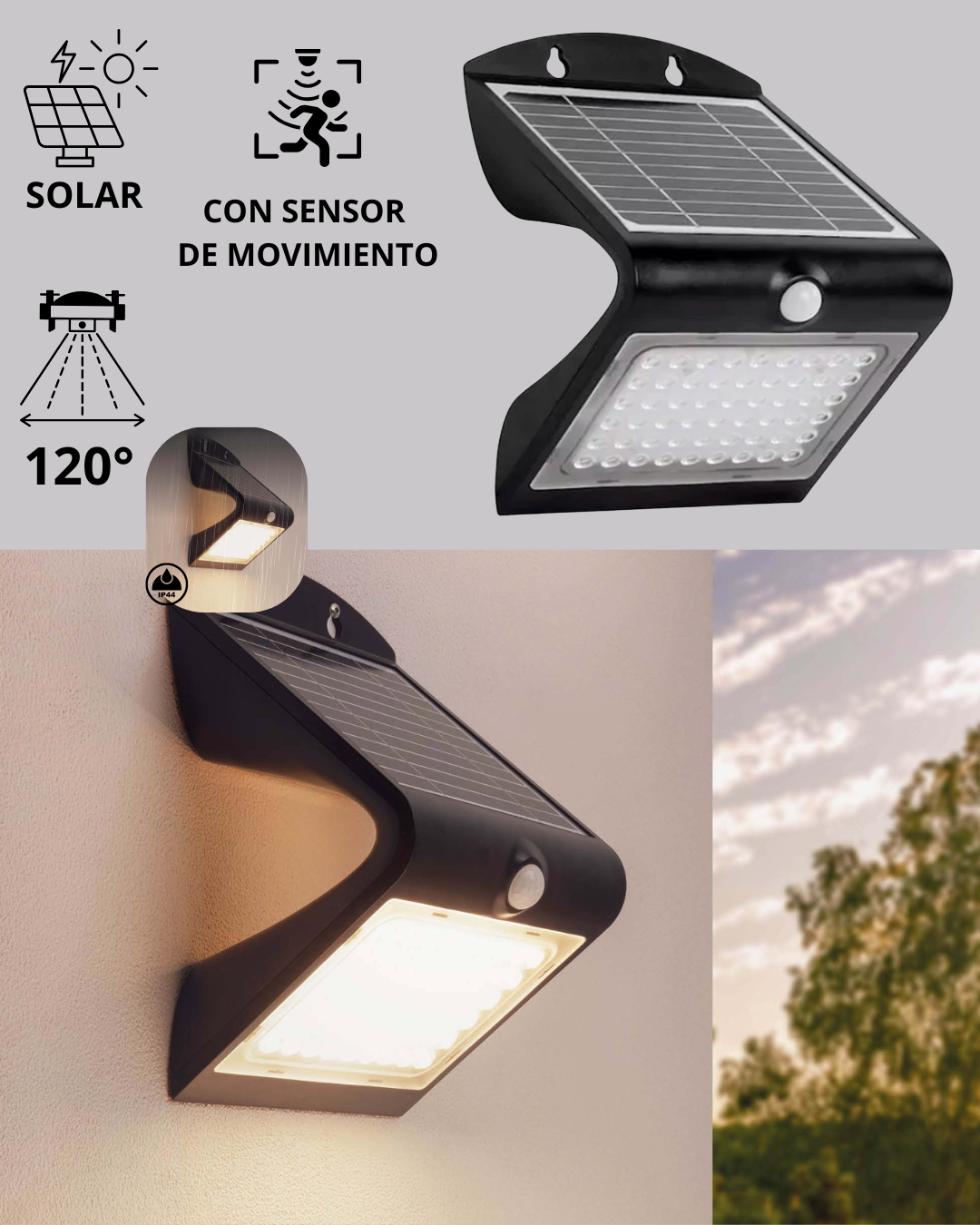 CON SENSOR DE MOVIMIENTO – DISTANCIA DETECTABLE 3-5M Y 120º